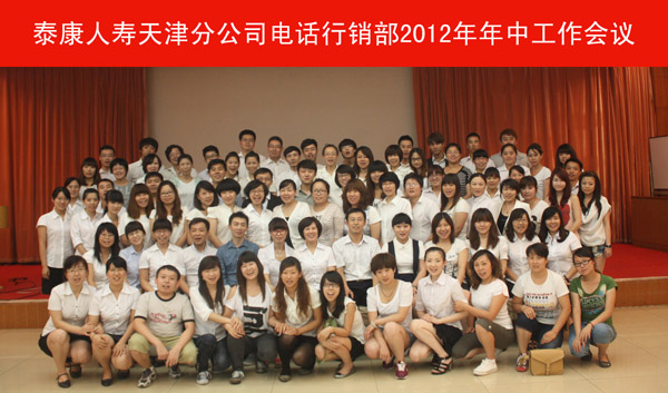为及时总结上半年经营情况并保证下半年工作有序地开展,确保全年目标的达成,2012年7月7日,泰康人寿天津分公司召开了电销2012年年中工作会议。天津分公司总经理王献良、电销部全体内勤、业务主管以及所有星级员工齐聚会场,共同见证这承上启下的关键时刻。