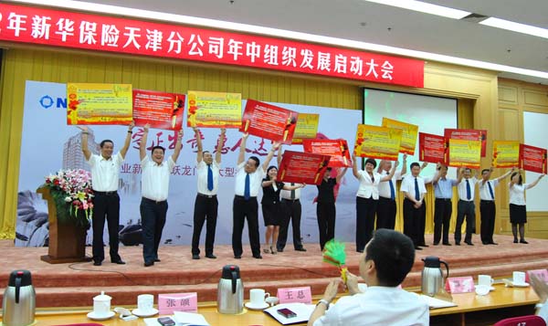 7月3日至4日,新华保险天津分公司营销业务渠道组织召开“2012年营销骨干年中组织发展启动会”。大会对上半年及六月份的工作进行了盘点并对七八扩军工作的框架思路与体系搭建进行了宣导启动,参会营销骨干进行了研讨。分公司朱涛副总经理(主持工作)在会上发表讲话,通过探讨“组织发展与发展组织之间的区别”这一问题阐述了七八扩军对于营销业务发展的重大意义,他同时提出四点要求:一是要放眼未来,再创组织发展新辉煌;二是要放大格局,瞄准组织发展新高度;三是要放开手脚,实现组织发展新突破;四是要放开怀抱,收获组织发展新利益。