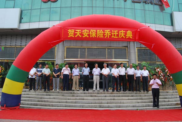 8月8日上午,天安保险天津分公司宁河营销服务部在新址举办了乔迁庆典。天津市宁河县人民政协主席李东海、副主席董恩星、宁河县工商局、公安局、税务局等各单位领导莅临了庆典。分公司总经理王珂、副总经理邢陆山、总经理助理王艳龙出席了庆典仪式。董恩星副主席对庆典仪式发表了致辞,肯定了宁河营销服务部对宁河县经济建设所做的贡献,对宁河营销服务部乔迁新址表示了祝贺,并寄予了厚望。天津分公司总经理王珂做了重要讲话,王珂总首先对各位领导、客户的莅临表示了感谢,并向各位来宾介绍了天安保险公司的发展历程、企业文化、注册资本、营业网点、特色服务等,最后对宁河营销服务部未来的发展壮大提出了新的要求。(天安保险天津分公司 金慧荣)
