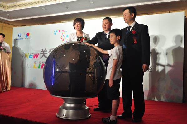 启动仪式现场有幸邀请到2011年度"新华保险杯"少儿书画大赛获奖小朋友与现场来宾共同分享创作的快乐与喜悦,展示“快乐的水果城堡”参赛作品,并为分公司送上书画作品。分公司三位领导与杜卓小朋友触摸磁力球,共同揭开第十二届客服节的精彩篇章。