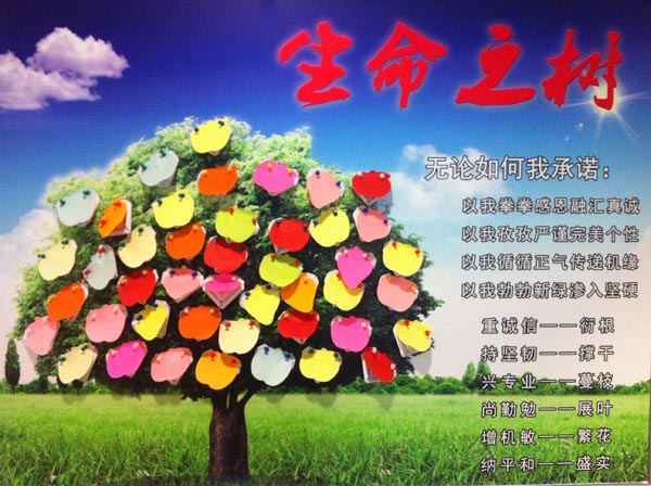 “生命之树”象征着天分的生生不息、蒸蒸日上,除了悬挂着所有人的承诺,还有我们全体的承诺:“无论如何我承诺: