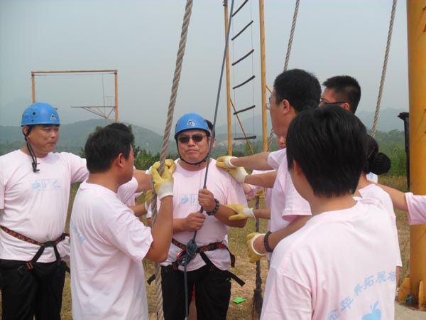 第二天,全体伙伴精神振奋,在开心的欢笑声中,参加了拓展培训项目,包括融冰、电脑键盘、生日排序、信任背摔、高空断桥等项目,促进了团队精神,挑战了自我的感知极限。