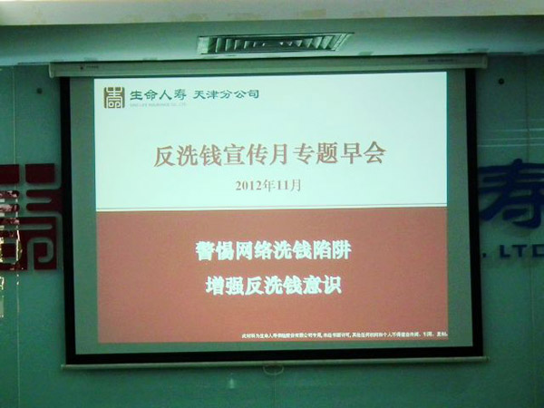 为贯彻落实全面风险管理思想,普及反洗钱知识,提高公司全员合规经营意识及反洗钱知识与技能,增强员工、客户及社会公众的反洗钱意识,营造良好的反洗钱氛围,近日,天津分公司组织各部门、各机构,在11月全月积极开主题为“警惕网络洗钱陷阱,增强反洗钱意识”的反洗钱系列宣传活动。