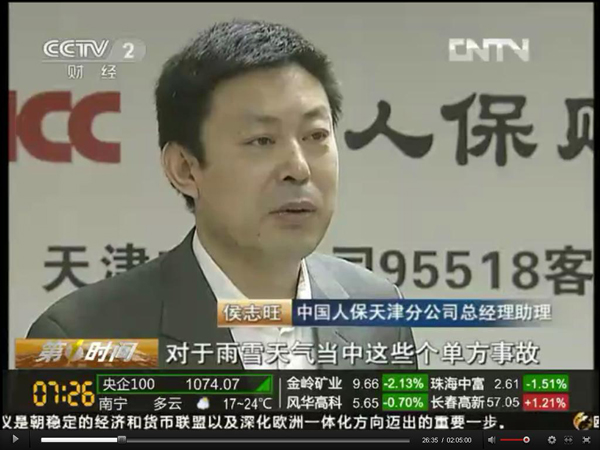 在节目中,天津市分公司值班人员介绍,为应对此次恶劣天气,该市分公司95518坐席人员由正常情况下的4人增加至17人,查勘定损人员增加一倍,保证每起案件在30分钟内到达查勘现场;为加快查勘处理速度,对单方事故免现场查勘,双方事故若均为人保客户也免现场查勘。
