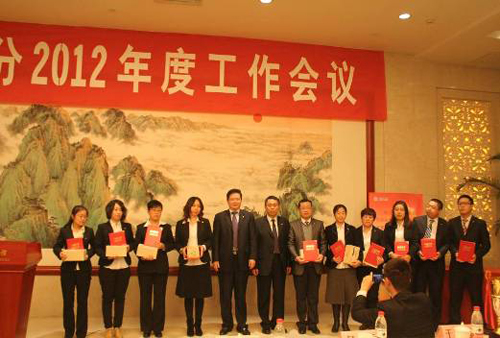 张志怀总宣布了2012年度天分由上级党委、总公司、行业协会授予相关荣誉的单位及个人的受表彰情况。他说在这一年中,公司的一些部门、集体及员工奋发图强、开拓创新、兢兢业业、任劳任怨,他们不仅为天津分公司的发展做出了巨大的贡献,而且在生命系统乃至全国险企范围内赢得了良好的口碑,为分公司争得了极大的荣誉。为大力弘扬先进,发挥榜样作用,推动全员创先争优,特向为分公司赢得荣誉的先进集体和个人表示崇高的、真诚的敬意。