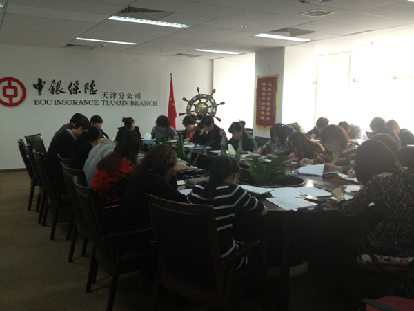 为提高营销条线人员的专业素质,打造一支素质高、业务精的营销队伍,中银保险天津分公司除强化培训工作外,还加大对培训效果的验收力度。分公司于日前组织开展了2013年第一期营销条线专业考试。考试内容主要包括保险法基础知识、银保业务相关知识等,分公司共计33人参加,除在职客户经理全员参加外,其他职能部门相关人员也主动参加了考试。