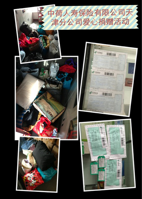 正值中荷人寿“爱心天使”成立五周年之际,天津分公司全体员工积极相应总公司号召,自发从家里整理了一些无用的冬衣,并消毒洗净后邮寄到西藏边远地区,把爱心温暖传递。