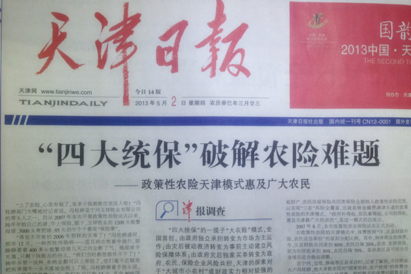 据悉,此次天津日报报道是落实天津市委常委、天津市副市长崔津渡关于“加大对农业农村保险的宣传力度,实现天津市农业农村保险全覆盖”的有关要求开展的宣传工作,必将对天津市农业农村保险发展将会起到积极作用。(人保财险天津分公司)