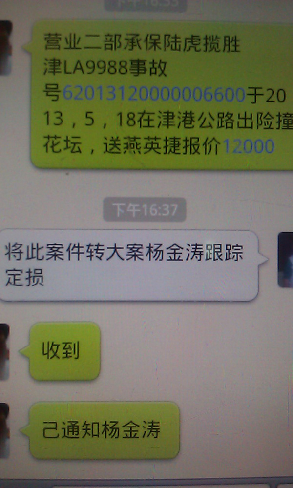 由于查勘区域覆盖面扩大,查勘条线进一步拉长,天津国寿财针对当前业务状况,特推出查勘“微信化”服务,所有查勘人员均加入微信群,一方面,案件发生后实现全体通知,提高大案及时汇报反馈效率;另一方面,就近二次派工,保证第一时间与客户联系;该新型沟通工具的实施,保证了管理的精细化,进一步提升理赔服务质量和效率。(国寿财险天津分公司)