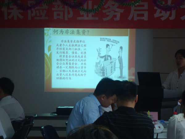宣教活动中,参与培训人员纷纷列举了近十几年来在社会上接触到和了解到的一些利用各种途径进行的非法集资活动,从犯罪形式、内涵和带来的深远影响进行了热烈的讨论。 通过本次系统学习,大家纷纷认识到作为保险行业从业人员,更应该提高自身非法集资的识别能力,掌握非法集资的特征,为打击非法集资活动做出贡献,同时加强自身素质,提高业务技能,利用自身的专业知识健康的开展保险业务。(合众人寿天津分公司)
