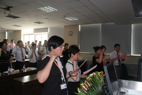 2012年,经过党支部推荐,党委考察、审议,两名新党员加入党组织,另外,两名预备党员顺利转正。党委委员苏祥国总带领全体党员在党旗下庄严宣誓,重温入党誓词。随后,党委委员任晓明总宣读表彰决定,优秀党务工作者、优秀党员依次上台接受嘉奖。