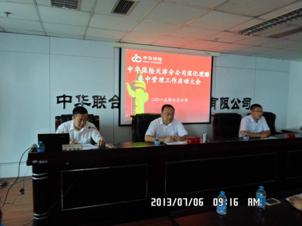 为认真做好“深化理赔集中管理”工作,确保天津分公司的理赔管理工作取得更好成绩,天津分公司于2013年7月6日成功召开了天津分公司“深化理赔集中管理”工作启动大会。分公司及所属各机构班子成员、机关各职能部门负责人以及分公司全体理赔人员参加了此次会议。