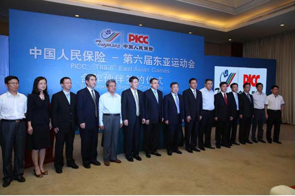 在签约仪式上,第六届东亚运动会组委会执行局副局长林炎生与分公司高健总经理签署了合作伙伴协议,东亚运动会组委会秘书长兼执行局局长王津生向中国人民财产保险股份有限公司副总裁降彩石颁发了《天津2013年东亚运动会合作伙伴》证书。