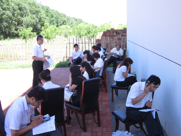 部经理们进行现场电话销售,针对老客户推介新产品富贵金升,共获意向客户62人。
