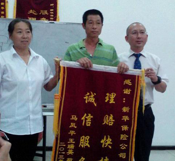 7月15日一早,新华保险天津分公司客户马先生在业务员的陪同下来到大港支公司,并亲手送上锦旗表示感谢。