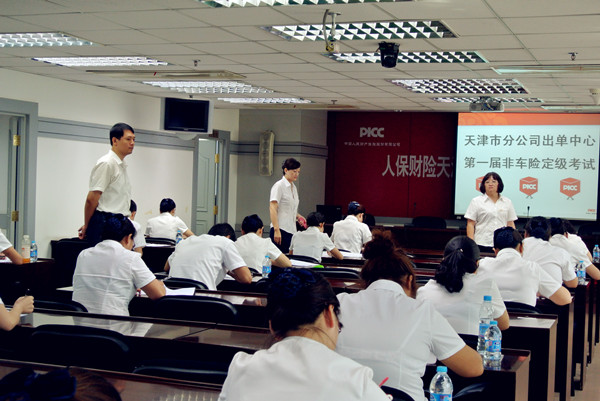 8月31日,人保财险天津市分公司出单中心第一届非车险定级考试在19楼、24楼举行,共82名选手参加考试。