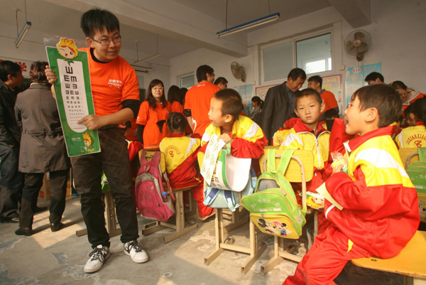 上午九点半,捐赠仪式正式开始。首先,天津地区品牌总监、行政部王伟经理和财务部李红经理代表分公司向希望小学捐赠了42寸液晶电视、笔记本电脑、音箱、油墨、纸张等物品,并在讲话中表达了分公司各级领导对希望小学的关注,希望通过本次捐助活动,让大山里的孩子们也能体验到电子教学的方便与乐趣,更对孩子们提出殷切希望。学生代表在发言中也表达了对分公司长期以来大力帮助与支持的感激之情,表示要用优异的成绩回报社会,长大后也要将这种爱心之火继续传递下去。随后,分公司同仁将带给孩子们的低碳计步器等用品发给每一位同学。