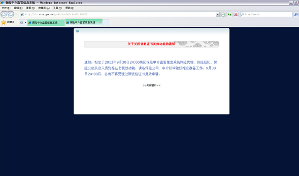 附件:保险中介监管信息系统中“关于关闭资格证书复效功能的通知”