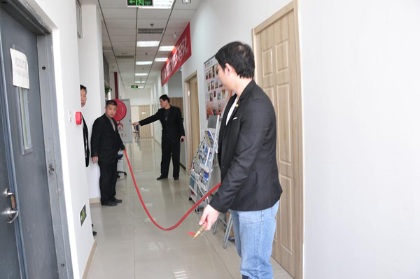 演练的第一项是火灾现场师生紧急疏散,在物业通过公司内部广播体系发布了火情警告后,全体内勤员工服从预案,关闭电源,用手捂住口鼻,俯身靠墙,依次有序通过预定的三处防火通道逃离“火场”,来到安全地带。本次消防演练最为突出的是真实的模了火灾源头,并由公司防火负责人使用灭火器进行了真实扑救。通过此次演练,让全体员工更加直观地了解消防知识,掌握逃生自救的动作要领。在撤离到安全地带并清点人数后,由专业人士为大家宣讲了重要的消防常识,并结合大厦附近办公楼的几次火情事故,及其造成的人员和财产损失,提醒员工们必须掌握必要的消防常识和逃生自救技能,才能在事故发生的第一时间做出最佳反应,避免造成不必要的损失。