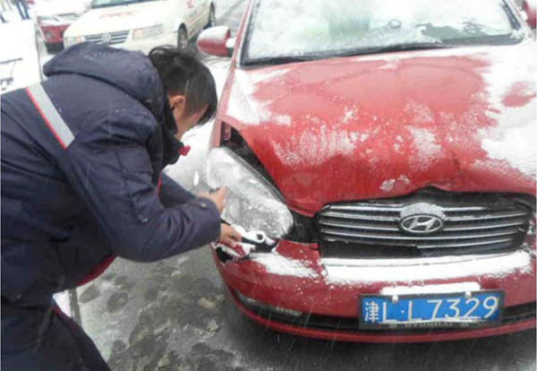为妥善应对降雪后事故激增,分公司主要开展以下几方面工作:一是查勘定损全员上阵,延长工作时间至21:00。二是在重点区域安排驻点人员,确保每起案件在30分钟内到达查勘现场。三是加快赔案处理速度,对5000元以下不涉及人伤案件要求在报案后48小时理赔处理完毕。四是周密部署95518专线员工值班安排,增加9名坐席人员,并与支公司和理赔部门紧密衔接受理报案。(人保财险天津分公司)