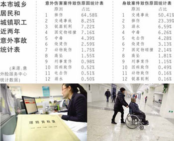 “目前,本市医保体系已经相当成熟,患者就医时只消刷卡支付自己需交纳的部分,相当便捷。而意外险相对运营时间不长,我们很多人对它都不熟悉,一旦遇到险情顿觉手足无措。”林先生深有感触地对记者说。