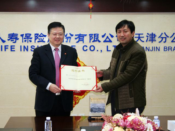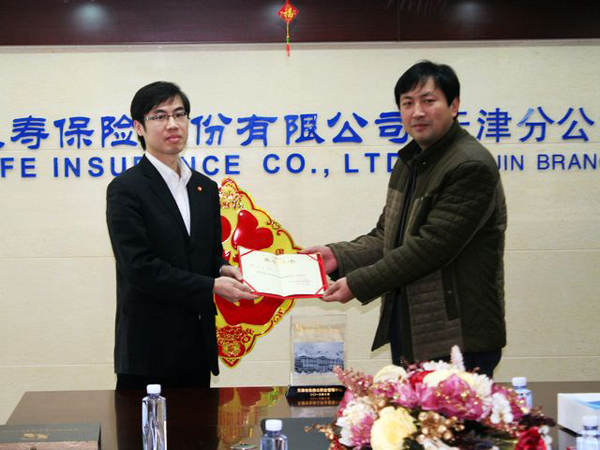2月14日,天津市住房公积金管理中心河西管理部副主任(主持工作)常青一行三人,专程莅临生命人寿天津分公司,现场颁发2013年度天津市住房公积金“百佳诚信企业”奖,总经理范中刚代表公司接受颁奖。于此同时,人力资源部员工武玉龙喜获年度“优秀经办员”荣誉称号并接受现场表彰。