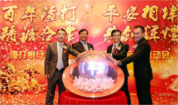 渣打银行天津分行丘国光行长对平安仅仅经过二十余年就跻身世界500强行列表示了崇高的赞叹,相信平安的专业精神一定能够助推渣打银行银保业务更上一层楼,实现双赢。最后,双方领导共同点亮印有“百年渣打平安相伴 真诚合作 共创辉煌”的水晶球,合作启动会进入最高潮。此次,银保系列将通过渣打银行这一重要的外资银行渠道,进一步开拓银保高端市场,为公司做出更大的利润贡献。(平安人寿天津分公司 蒋大为)