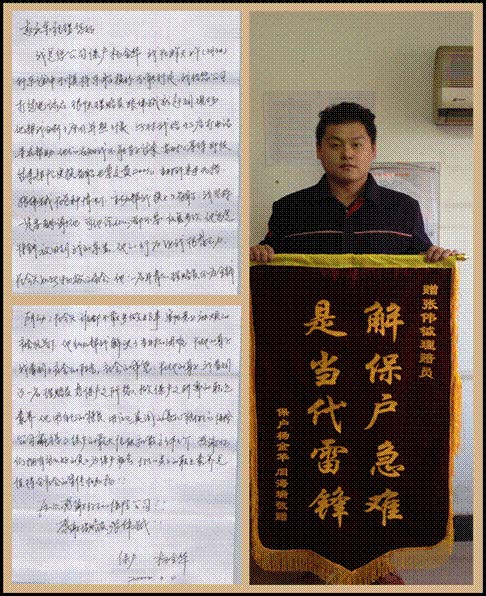 张伟钺的行为使车主颇为感动,并于事故发生后的第二天将满怀激动心情的表扬信和锦旗送至分公司。(人保财险天津市分公司)