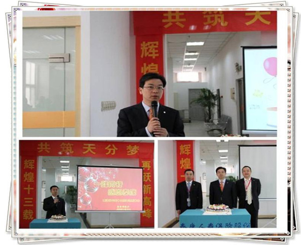 十三年来,在陈东升董事长的感召下,所有将士从四面八方汇聚于此,一起开拓经营这份奉献爱和关怀的事业;十三年来,天分从小到大,由弱变强,从青青小苗成长为擎天大树,屹立津门;十三年来,无论严寒酷暑,天分将士谨守着董事长的谆谆教诲,在总经理室的领导下,风雨兼程,从不停下追求泰康梦的脚步。今天,在天分成立13周年的喜庆时刻,全体伙伴带着喜悦的心情共同庆祝这个欢乐的时刻。