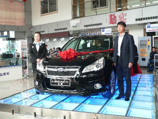斯巴鲁店方市场总监与第三直属业务部为新车揭幕