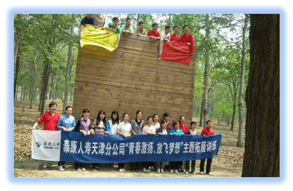 为进一步加强团队归属感和责任感,塑造团队精神,为团队成员的成长与发展提供充分施展的舞台,2014年5月1日,泰康人寿天津分公司组织以“青春激扬、放飞梦想”为主题的拓展训练,来自分公司千人计划、后备干部、绩优骨干共计30余人参加了此次培训。