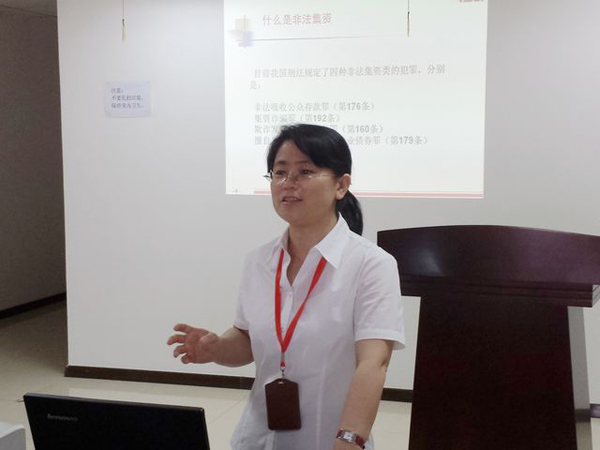 培训从阐述非法集资定义及其危害、分析打击非法集资的形势、判断如何识别和防范非法集资、详解防范保险领域非法集资措施等内容,从宏观到微观,由整体至细节,由浅入深紧密结合,使参训人员对法律法规关于非法集资的认定有了更加明确的认识。通过对金融行业几个典型非法集资案例的总结、归纳、剖析,为参训人员进一步指明了日常工作中的经营风险点。通过实例授课,再次强化了员工的防范风险责任意识,对于指导日常合规工作和应对外部监管风险均有指导意义。