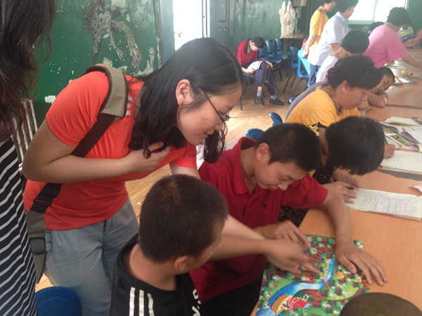 2014年5月26日,人保财险开发区支公司工会组织员工赴阳光家园智障儿童福利院进行献爱心活动。