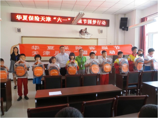为更好地履行险企社会责任,构筑爱心事业,传递社会正能量,华夏人寿自今年四月下旬开展面向全国少年儿童的“未来之星”客服节系列活动,为期四个月。本次客服节共包括四大主题活动,即千位困难儿童“华夏圆梦行动”、“让华夏充满爱”全国少儿才艺大赛、“点亮行动”援助地震灾区孤儿、运营服务大比拼活动等。千位困难儿童“华夏圆梦行动”率先启动,借助“六一”儿童节的契机,向全国百座城市一千位儿童赠送关爱物资和圆梦基金的爱心传递行动。华夏人寿天津滨海营业部在公司负责人吕凤和同志的指导下,各部门抽调人员组成圆梦行动志愿者团队,利用6月1日、6月3日两天时间分赴宝坻蓟县的农村社区和学校探望困难儿童,为他们送去温暖和爱心。