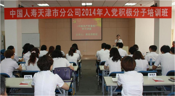 为进一步加强公司入党积极分子队伍建设,强化入党积极分子对党的方针、政策的理解和掌握,2014年6月4日至6日,中国人寿天津分公司举办2014年入党积极分子培训班,来自全辖各支部的34名优秀入党积极分子参加了培训。