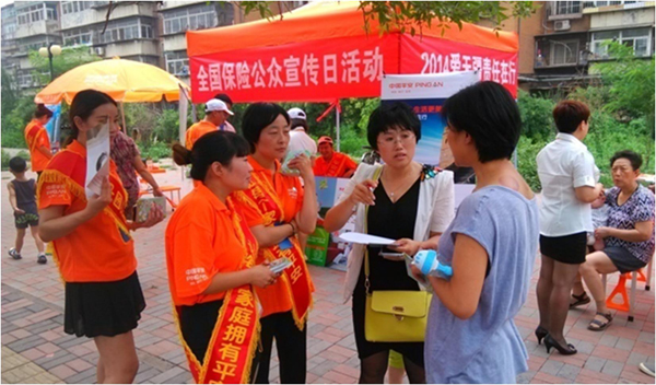 另外,“全国保险公众宣传日”之“进社区”宣传活动,也于7月5日在天津河西区西园西里小区和东丽区万隆花园小区火热开展,分公司副总经理王致梅、行政部经理王伟、市内四区区长仇树宏带领市内四区和市内七区的部分外勤同仁参与此项活动,向市民介绍保险知识及功用。天津保监局办公室主任袁玉梅、寿险处处长王博文等领导也莅临现场指导,对活动给予充分肯定。