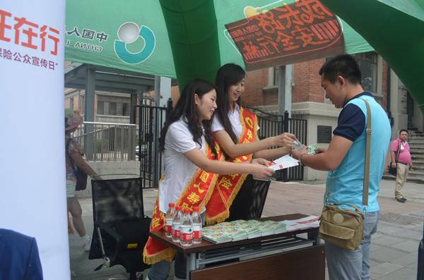 7月8日,天津国寿财险自主开展了保险公众宣传日活动,紧扣“爱无疆,责任在行”主题在交通便利人口密集的分公司门口搭建凉棚,并免费赠送矿泉水,桌上摆着公司的产品宣传册,让人们在纳凉的时候进一步了解公司。(国寿财险天津分公司)