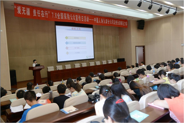 6月30日,中国人寿天津分公司来到天津师范大学这座美丽的校园举办保险知识公益讲座,让保险宣传“进学校”。下午2点,天津师大的中报告厅已经坐满了前来听讲座的师生。中国人寿天津分公司教育培训部的刘彦老师为大家带来一场别开生面的讲座,“保险概述”“保险基本原则”“财产保险”“人身保险”,几个章节勾勒出了保险的基本轮廓,幽默风趣的内容让大家轻松之中就掌握了知识。