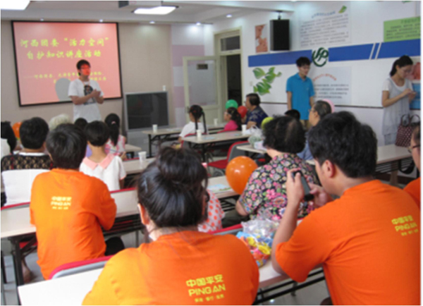 近日,2014年平安人寿天津分公司第19届客户服务节“平安行动”志愿者走进社区活动,正在津城多个社区中火热进行。