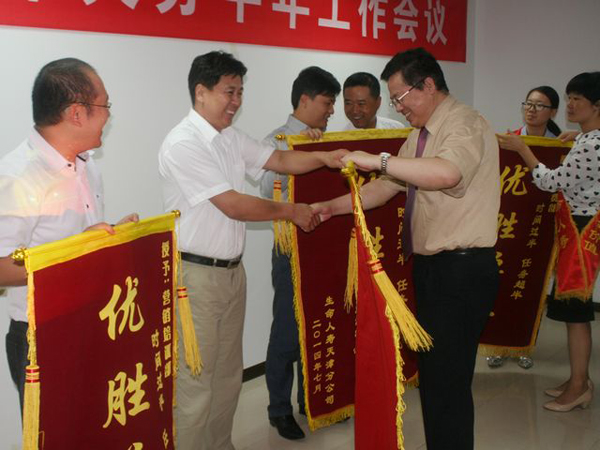 会上,分公司还对在上半年业务发展中取得突出成绩的四条业务渠道、六家优秀机构进行表彰并颁发锦旗以资鼓励。
