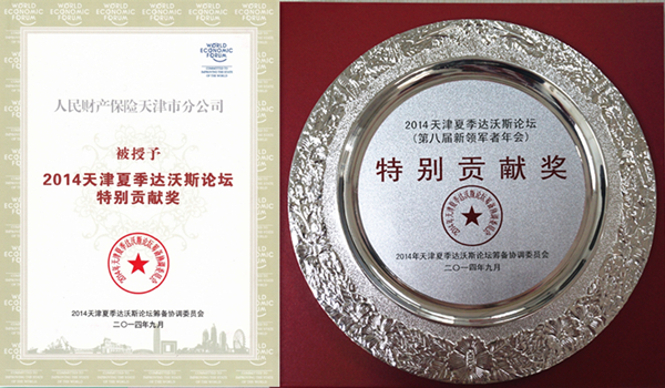 此前,分公司还收到天津市人民政府的致敬信,对天津分公司2014天津夏季达沃斯论坛承保及理赔服务工作给予好评。信中写到:人保财险天津市分公司作为2014天津夏季达沃斯论坛筹备协调委员会成员,认真落实职责分工,严格按照国际化标准,高水平、高质量、很安全地完成了本届夏季达沃斯论坛的相关筹备工作。相关工作人员发扬吃苦耐劳、持续作战、勇于奉献的精神,为论坛精彩成功做出了贡献。