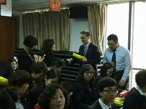 12月21号冬至前日,冒着橙色预警的重度雾霾天气,太平人寿天津分公司各级领导分兵多路,前往各机构开展了开门红暨冬至慰问活动。在个险2016年“畅享世家”秒杀战役前夕,为一线伙伴送去了水饺、饼干、咖啡等慰问品,向全体奋战在“开门红”战役中的一线内外勤员工致以衷心的感谢和亲切的问候。