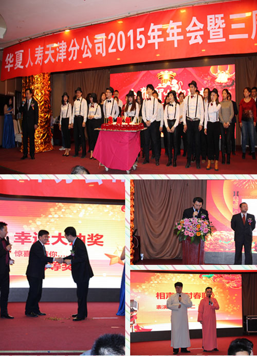 2016年2月4日下午,华夏保险天津分公司在天津君豪酒店召开了分公司2015年年会暨三周年司庆庆典。分公司总经理室成员、各部门负责人、全体内勤员工以及来自营销渠道、银保渠道、团险渠道的销售精英参加本次活动。