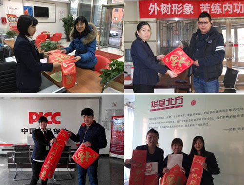 在新春佳节到来之际,人保财险天津市分公司积极组织开展“金猴迎春,人保送福”春节主题宣传活动,共印制宣传品16000套,赴4S店、农村合作社等地,为办理承保和理赔的客户赠送带有人保LOGO的“福”字和春联,得到了客户的肯定,达到了良好的宣传效果。 此外,天津市分公司还发动员工在微信朋友圈积极转发春节主题宣传文字和图片,以吸引客户到店投保,体现了人保对客户的关怀,增强客户对人保品牌的认可与喜爱。 (人保财险天津市分公司)