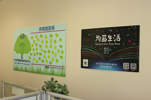 公司在办公区内张贴了本年度活动的宣传海报,设置了“环保宣言墙”。员工们积极参与,将自己的环保行动宣言写下来张贴在环保宣言墙上,希望每一个低碳环保行动,能为环境保护和可持续发展尽到一点绵薄之力。(爱和谊日升同和)