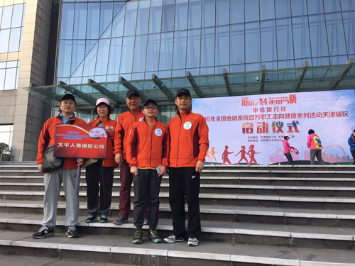 4月9日上午8时整,“2016年全国金融系统百万职工走向健康”系列活动天津辖区启动仪式如期举行,太平人寿天津分公司工会副主席何金艳同志带领分公司代表团共5人参加了本次盛大活动。