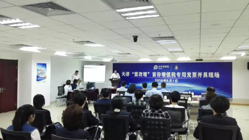2016年5月1日零时,太保产险天津分公司成功开具天津金融保险业首张增值税专用发票。天津国税局、天津保监局、天津分公司相关领导、多家媒体及客户代表现场共同见证了这一历史性时刻。(太保产险天津分公司)