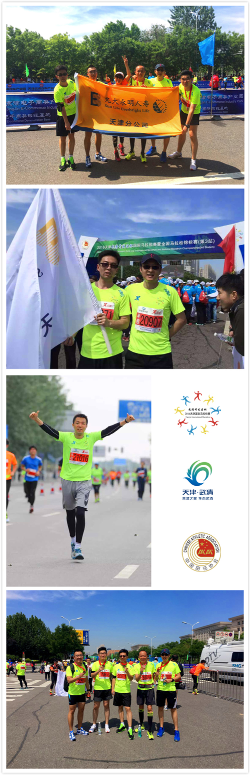 2016年5月15日津武清开发区杯国际马拉松赛暨全国马拉松锦标赛鸣枪。赛事吸引了近2万名来自世界各地的专业田径运动员及马拉松爱好者的参与。为展现公司员工奋发向上、努力拼搏的精神面貌,光大永明人寿总公司个险业务部副总经理施黎、天津分公司总经理马军、副总经理曹玲惠携总分公司参赛选手参加了此项赛事。