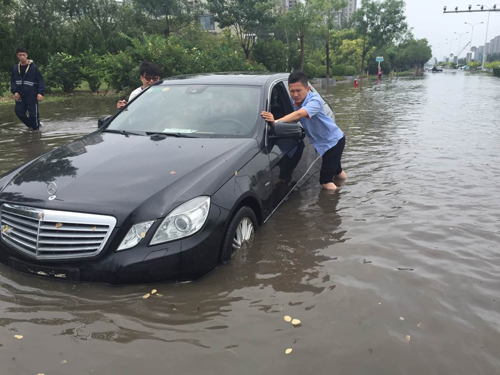 7月20日天津降特大暴雨,降雨量达到180多毫米,天津国寿财险立即启动灾害紧急应对方案,全体查勘员、电话中心人员全部上岗投入到抗灾救援活动中去,针对天津市市内六区布置人力前往现场引导客户科学施救,协助客户将浸泡车辆移出水面。