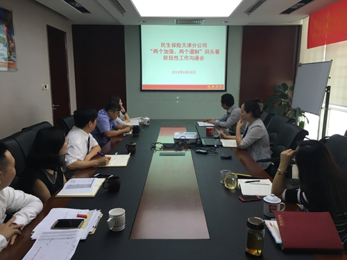 2016年8月24日,天津分公司召开“两个加强,两个遏制”回头看阶段性工作沟通会,会议由各部门负责人向分公司责任人王传胜总就“两两”回头看工作的进展进行全面汇报,并针对自查工作中需各部门配合的项目进行了说明。随后,由分公司责任人王传胜总带领的领导小组对各部门自查工作进行督导。